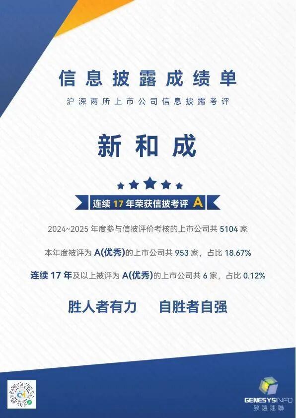 深圳證券交易所公布了深市上市公司2024~2025年度信息披露考評(píng)結(jié)果,新和成以整體運(yùn)作規(guī)范、高質(zhì)量的信息披露再次獲得最高評(píng)級(jí)A。